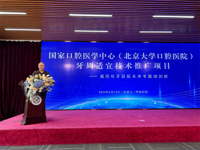 2024 年 4 月 13 日,牙周科副主任释栋带队钟金晟、甄敏和杨刚等专家一行赴呼和浩特,在内蒙古自治区人民医院开展培训讲座,推进主题为“规范化牙冠延长术的区域推广和应用”的国家口腔医学中心适宜技术推广项目。