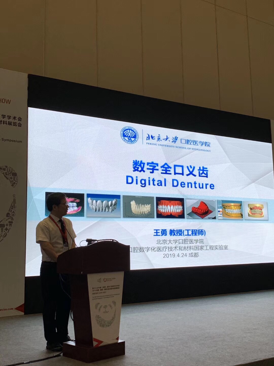 2019年4月23日至25日,中国西部国际口腔展在成都召开,我院自主研发的FSD数字全口义齿,应邀参加学术交流环节,合作企业也在展示区进行了产品系统现场宣讲。王勇教授代表课题组在“全口与可摘修复的数字化设计与制造”会场与修复医生进行入深入的交流、在“全国口腔修复工艺与多学科融合发展论坛”会场与修复技师进行了专题交流。