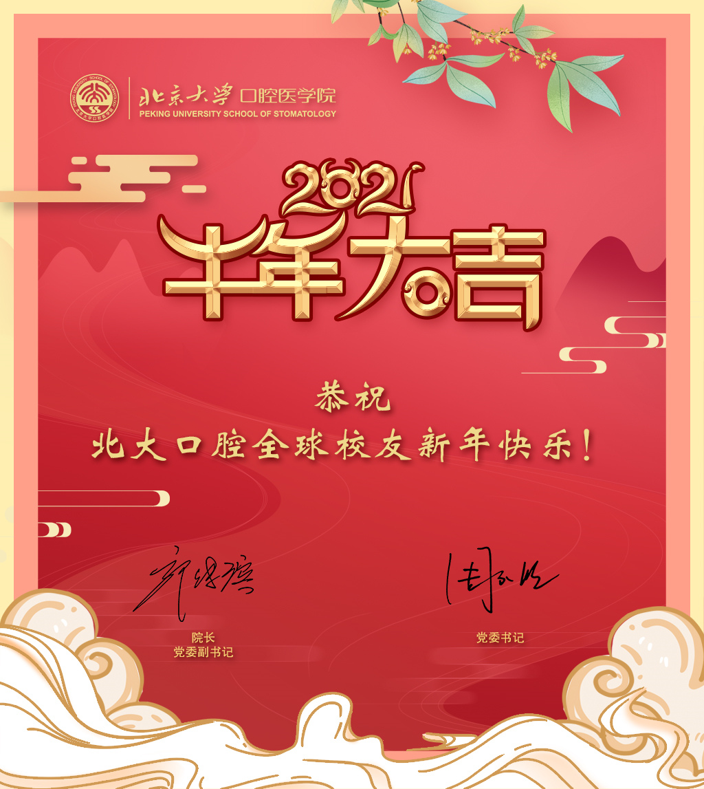 律回春渐,新元肇启。挥手作别又一个春秋,我们已踏上2021年的起点,新的一年我们将乘风破浪,扬帆远航,坚守北大医学发展理念,积极推进“健康中国”国家战略,稳步推进“十四五”改革发展大局,为“建设世界一流口腔医学院”逐梦前行!