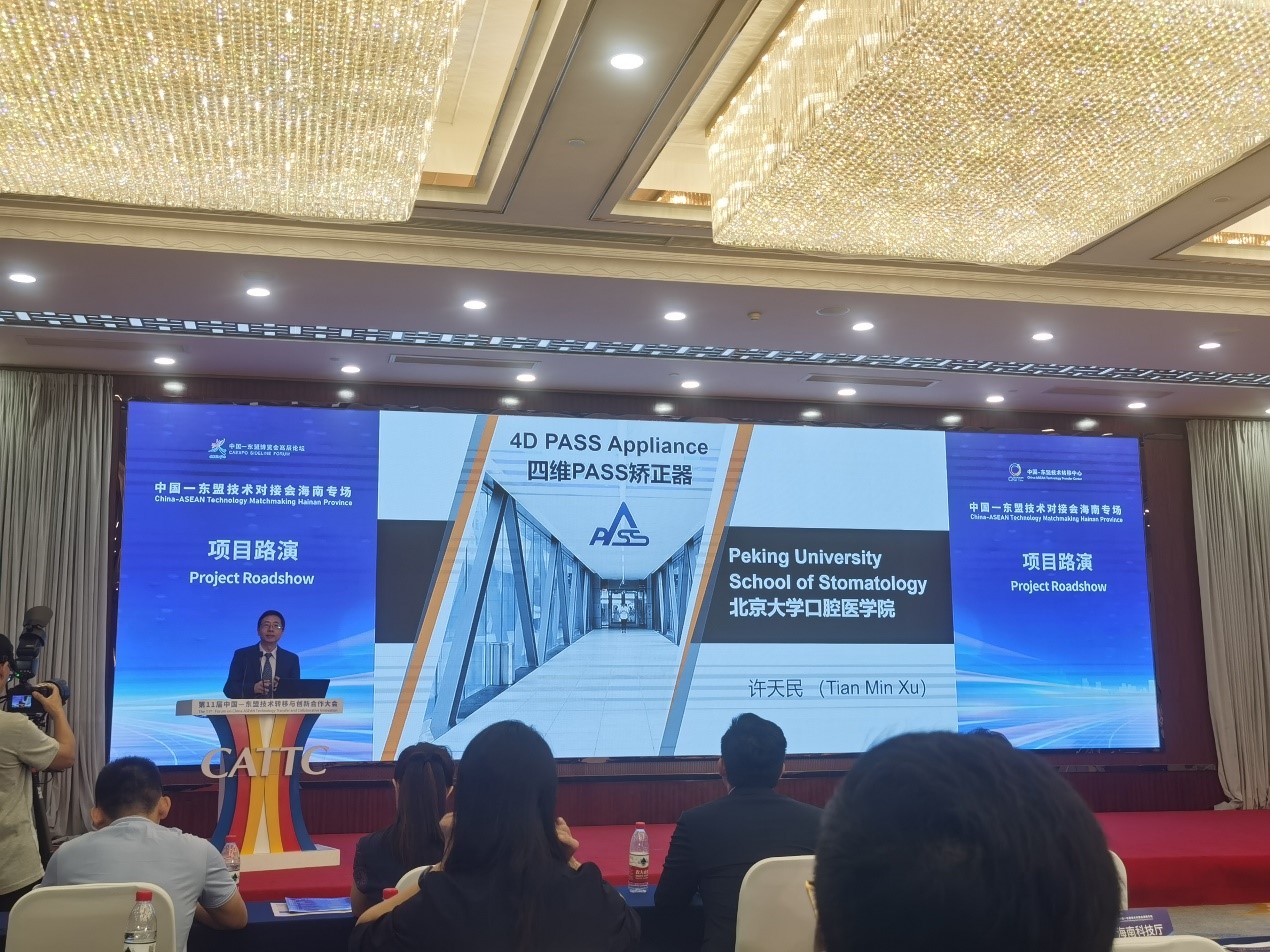 7月13日,北京大学口腔医院许天民教授课题组携自主创新的“四维生理性支抗矫治器(4D PASS Appliance)”项目参加第11届中国—东盟技术转移与创新合作大会,进行了精彩的项目路演,引起与会部分科研机构和企业的浓厚兴趣,在自由对接交流环节,洽谈了合作意向。