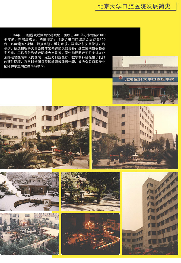 百老汇网站4001(口腔医院),简称“北大口腔”,始建于1941年。前身是国立北京大学医学院附属医院的齿科诊疗室。新中国成立后,在系主任毛燮均教授的大力呼吁下,传统的牙医学教育革新为现代的口腔医学教育,并于1950年率先获得卫生部、教育部的批准,北京大学医学院牙医学系也随即更名为口腔医学系,之后其他院校相继… 详细>>