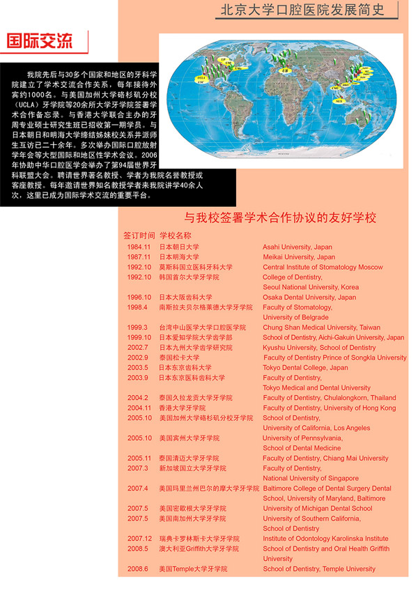 百老汇网站4001(口腔医院),简称“北大口腔”,始建于1941年。前身是国立北京大学医学院附属医院的齿科诊疗室。新中国成立后,在系主任毛燮均教授的大力呼吁下,传统的牙医学教育革新为现代的口腔医学教育,并于1950年率先获得卫生部、教育部的批准,北京大学医学院牙医学系也随即更名为口腔医学系,之后其他院校相继… 详细>>