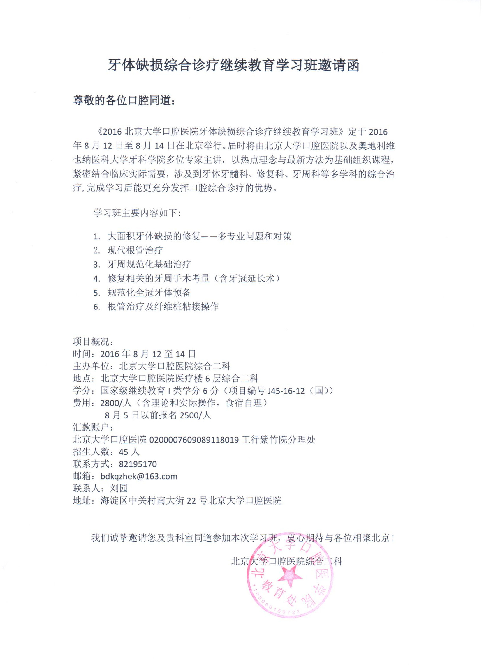 2016北京大学口腔医院正颌外科临床基本技术学习班日程安排